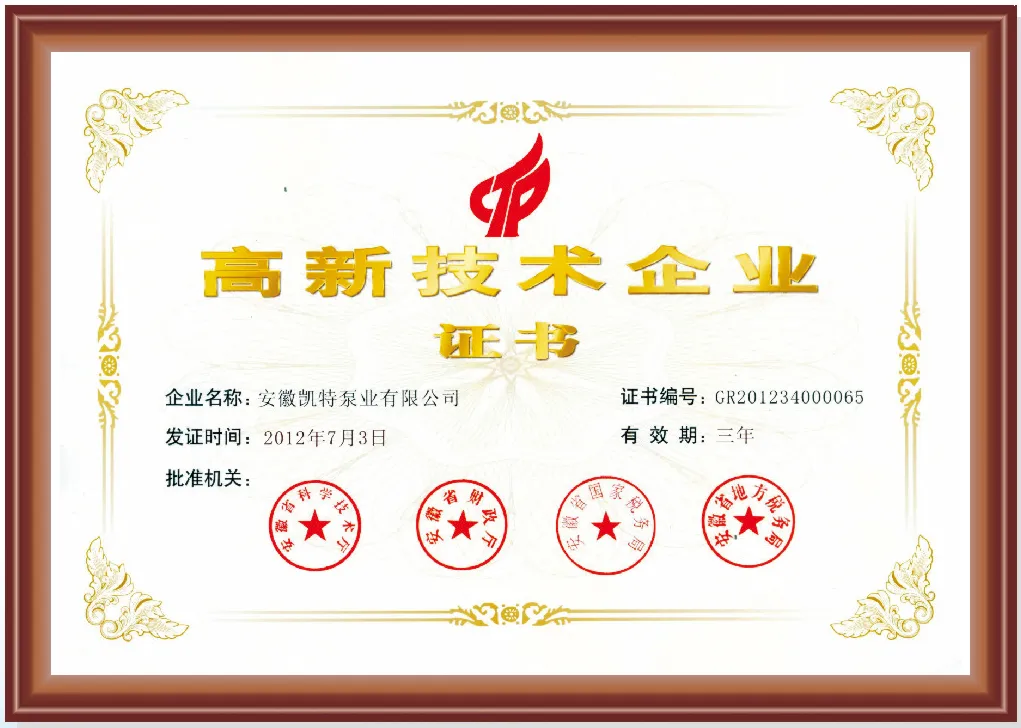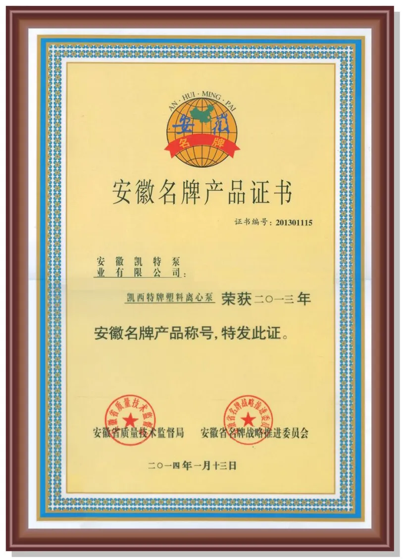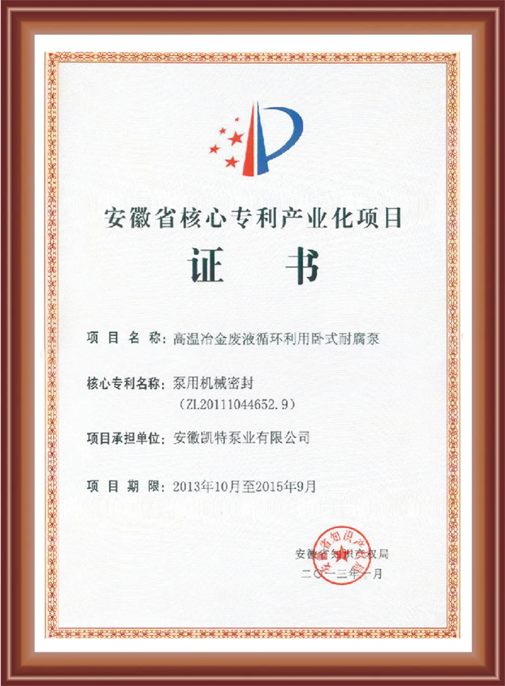 The horizontal corrosion-resistant pump for the recycling of high-temperature metallurgical waste liquid has been awarded the National Key New Product by the Ministry of Science and Technology; the Anhui Science and Technology Award by the People's Government of Anhui Province; and the Anhui Patent Excellence Award by the Intellectual Property Office of Anhui Province.