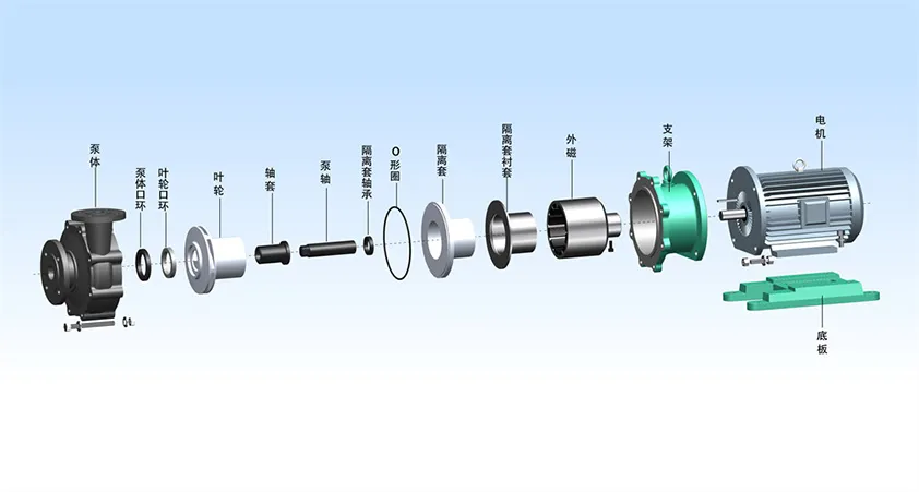 Scope of application: TMF magnetic pump is fully sealed, leak free, efficient and energy-saving, with a wide range of applications, suitable for chemical, acid, alkali, petroleum, nuclear power, chemical products, electroplating, electrolysis, chemical fiber, fertilizer, pharmaceutical, especially for the transportation of highly toxic, flammable and explosive liquids.